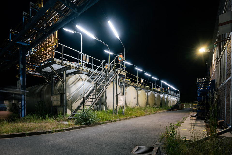 Das Gelände der Innospec Deutschland GmbH erstrahlt neuerdings in energiesparendem Licht: Die Stadtwerke Herne haben das Chemiewerk mit einer maßgeschneiderten LED-Anlage ausgestattet – bei laufendem Betrieb und hohen Sicherheitsvorschriften.