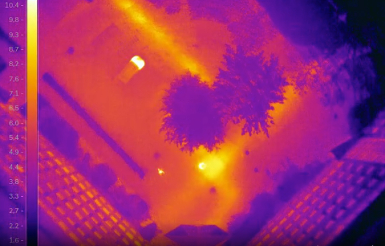Die moderne Drohne ist mit zwei Kameras ausgestattet: Eine hochauflösende Thermografie-Kamera erkennt bereits geringste Temperaturunterschiede und macht sie in unterschiedlichen Farben sichtbar. Parallel zu den Thermobildern entsteht eine Realaufnahme zum Vergleich.
